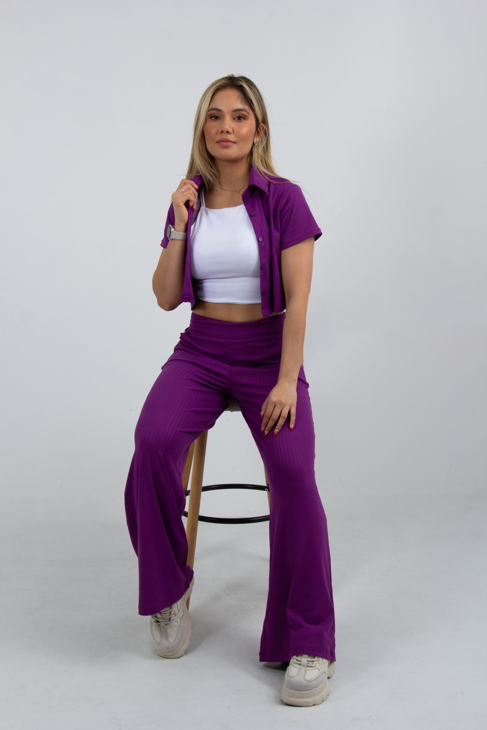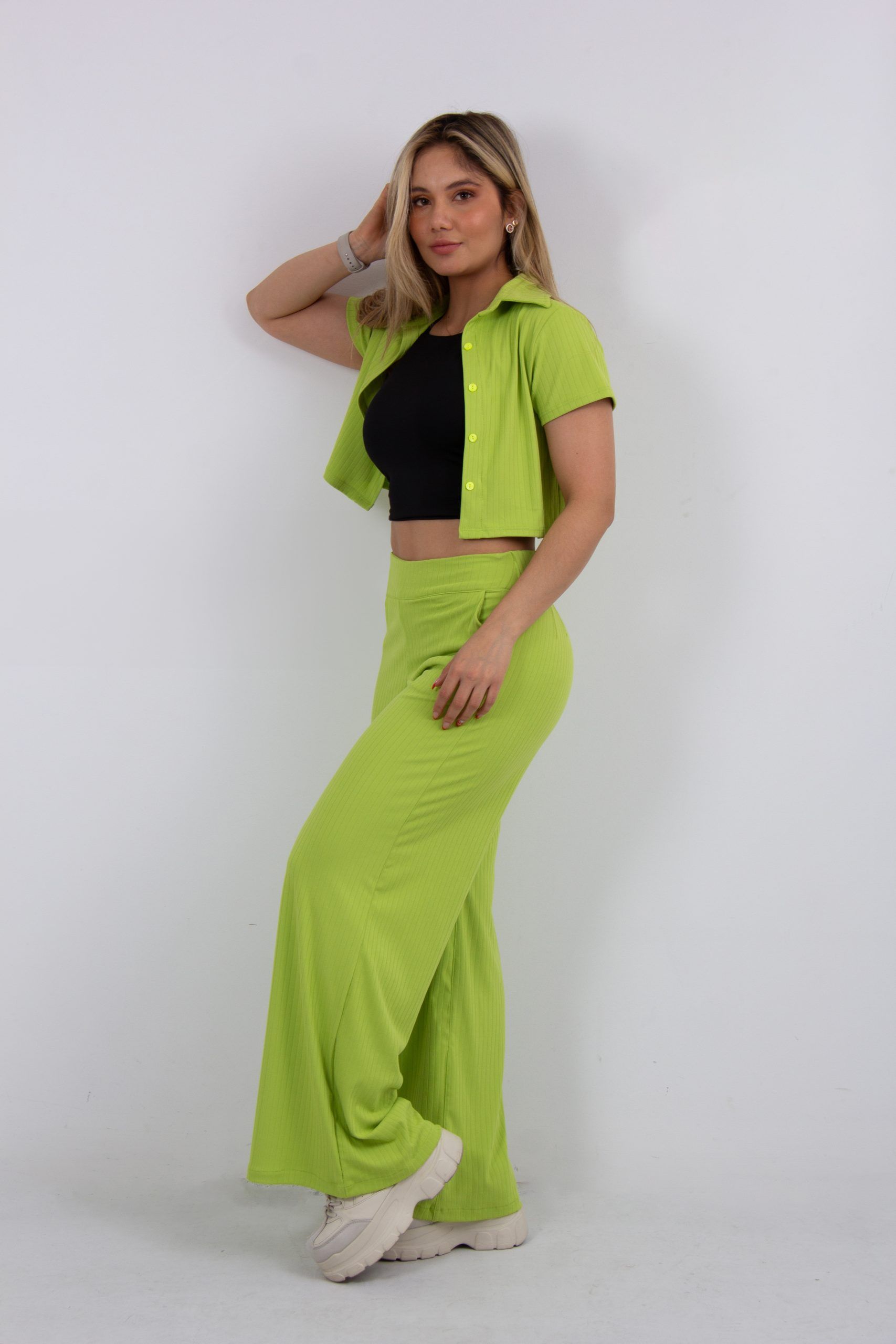 Set de blusa manga corta y Pantalón bota ancha